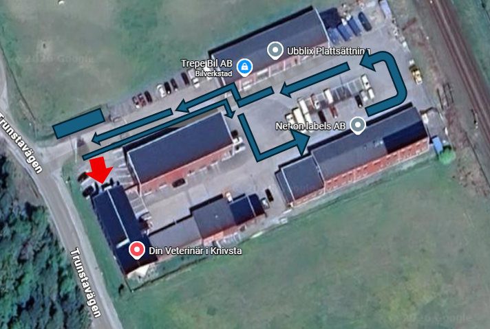 - Följ anvisningarna på kartan för in- och utfart till området (Parkera enligt instruktion utmed staketet till höger).